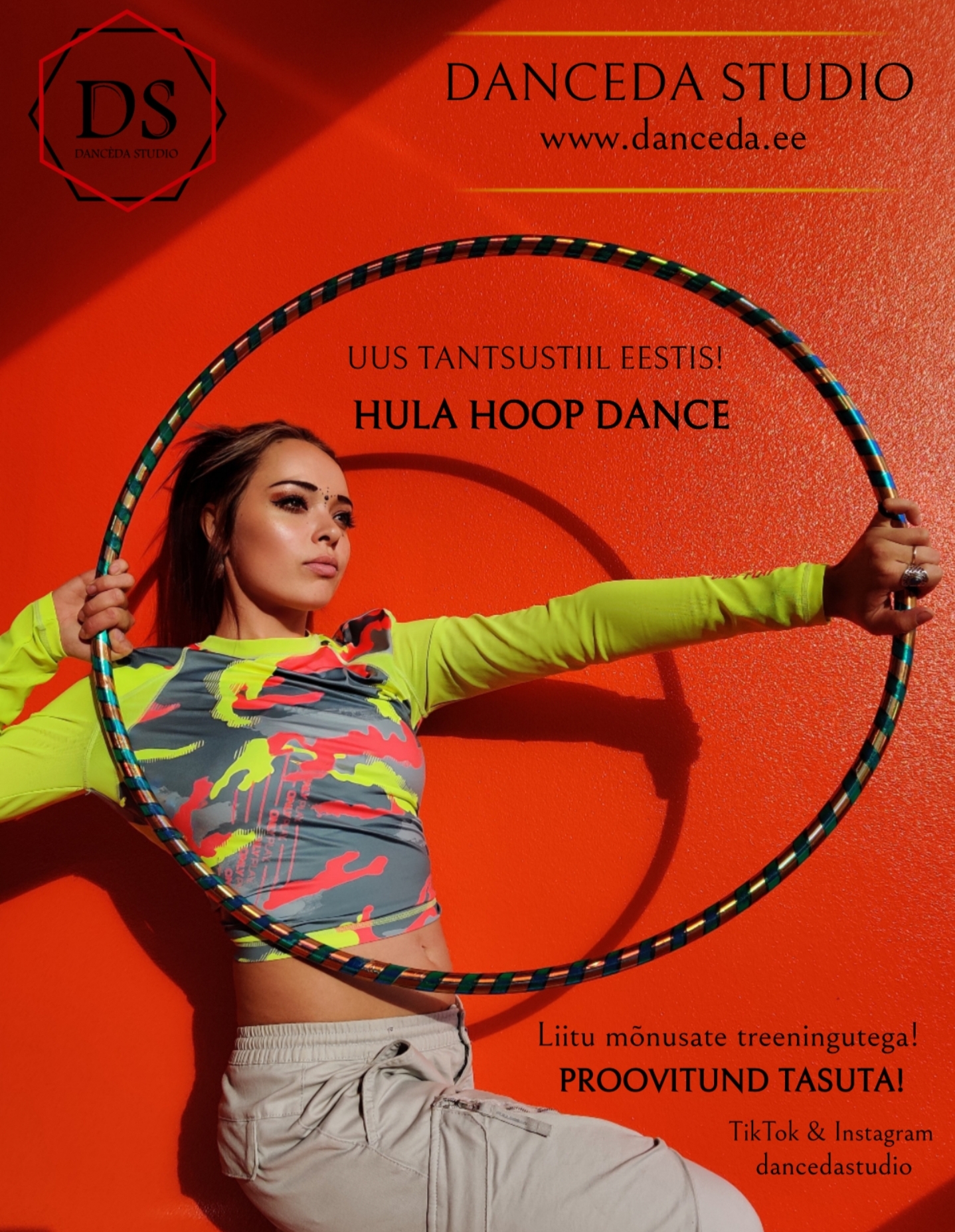 1x nädalas 42€/kuu, 2x nädalas 60€/kuu, Saku valla huvitegevuse toetus ; Tulumaksutagastus!Hula Hoop Dance on täiesti eraldiseisev tantsustiil, mis liigitub “Flow Art” vormi alla. Hoopingut harrastatakse üle maailma, kuid Eestis veel mitte nii palju. Hula hoop dance kujutab endast põhiliselt trikkide tegemist nii keha, käte kui jalgadega. Trikke on üle 300 koos variatsioonidega. Trikke põimitakse tantsuga ja kujuneb välja HulaHoop Dance. Hula hoop dance on vabamas võtmes ning seda saab pea iga muusikastiili järgi tantsida. Painduvus ja akrobaatika on ainult boonuseks ja sobib kõigile vanuseastmetele.