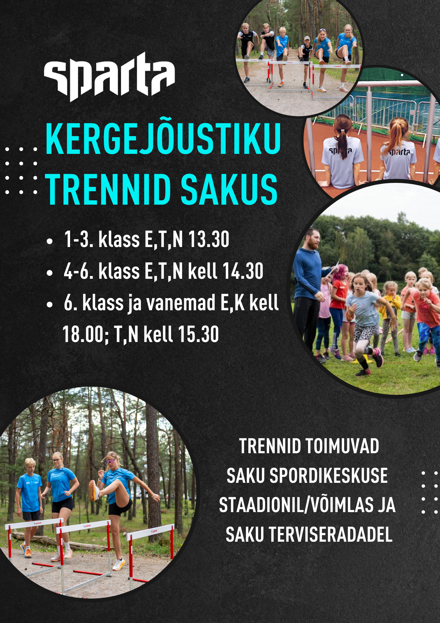 https://sparta.ee/spordikool/kergejoustik/kergejoustik-sakus/Kergejõustikutreening toetab last mitmekülgselt, kuna arendatakse nii kiirust, koordinatsiooni kui ka jõudu. Treeningute eesmärk on tõsta lapse üldise kehalise ettevalmistuse taset. Selleks omandab ta palju liigutusoskusi ja kergejõustiku põhialade tehnikaid.