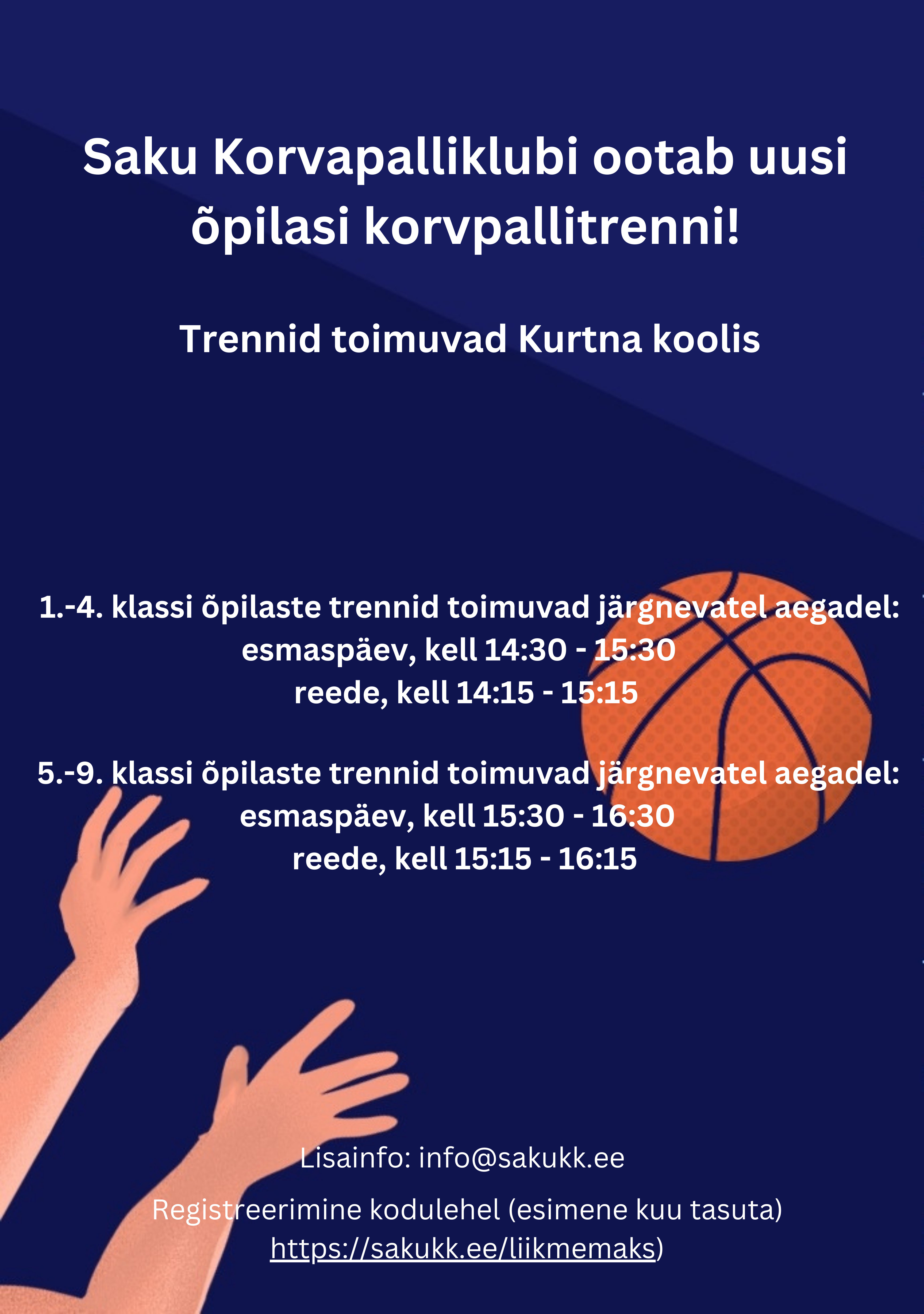 40 eurot kuuSaku Korvpalliklubi pakub korvpallitreeninguid Kurtna õpilastele!