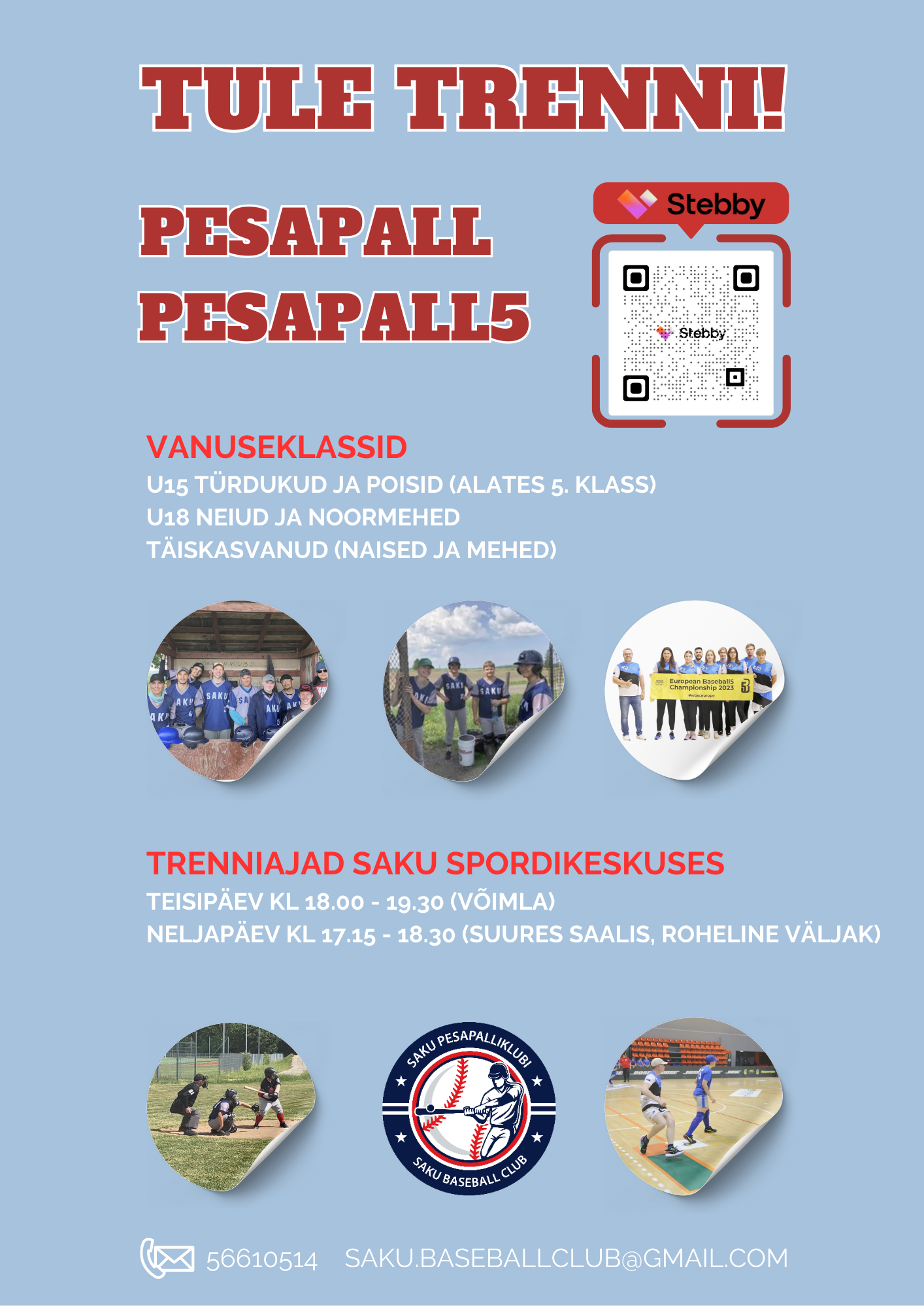 Lisainfo 56610514 või saku.baseballclub@gmail.com