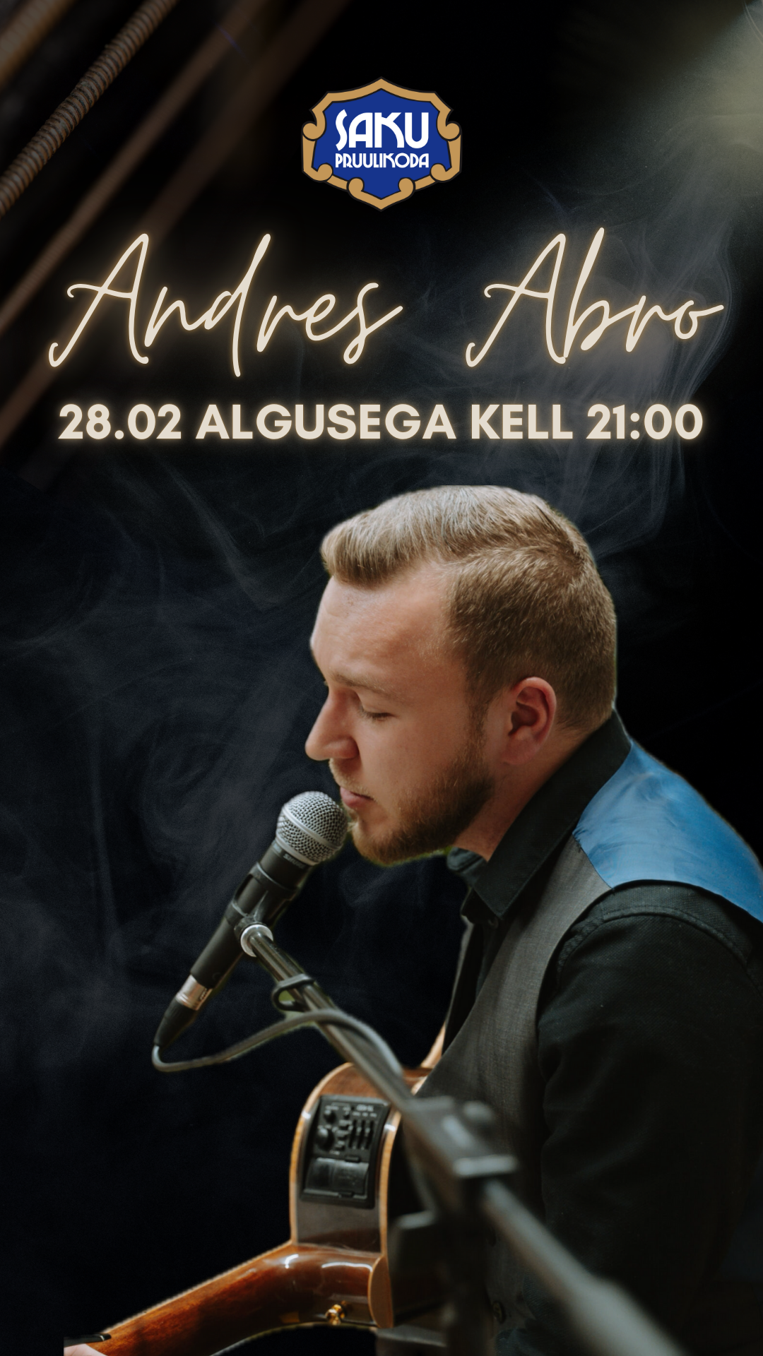Pilet 10,- kohapealTule veeda unustamatu õhtu koos Eesti laulja-kitarristi Andres Abroga Saku Pruulikoja Pubis!