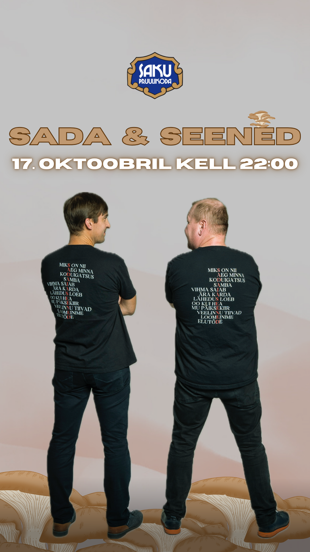 Sada ja Seened – kahe mehe kooslus, kes oskavad luua ühe tõeliselt mõnusa kontserti elamuse! Nende hoogne energia, särtsakad lood ja vaimukas esitus teevad sellest õhtust midagi enamat kui lihtsalt kontsert. Seda pidu sa ei unusta!