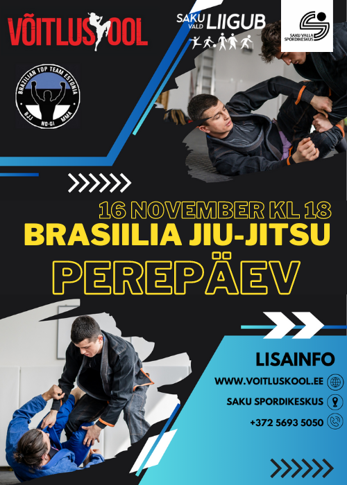 Olete kõik oodatud 16.11 kella 18-19.30 oodatud TASUTA BRASIILIA JIU-JITSU PEREPÄEVALE!