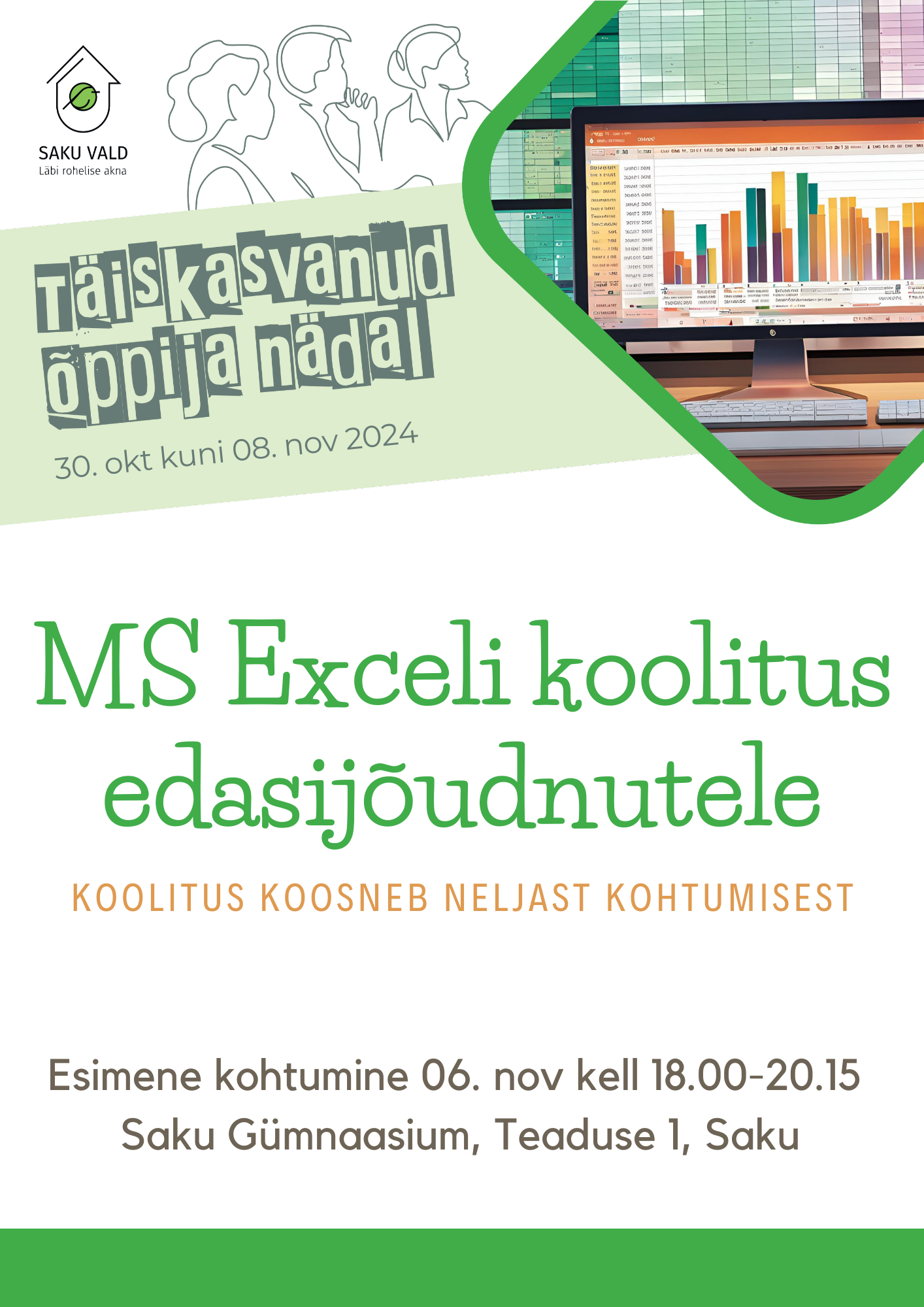 Microsoft Exceli koolitussari edasijõudnutele annab võimaluse parendada Microsoft Exceli tarkvara kasutamise oskusi. Koolituse neljal kohtumisel õpitakse kasutama Microsoft Excel’is keerulisemaid funktsioone (k.a andmete võrdlus, Exceli ühildamine Wordiga nn masskirjade saatmiseks või diplomite trükiks).