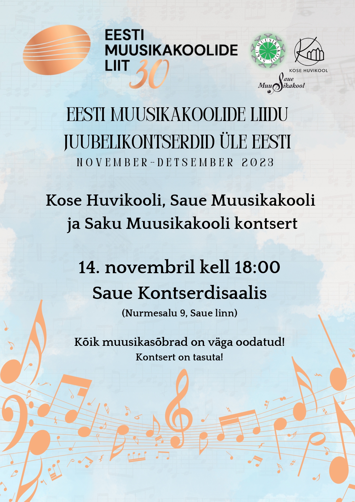Kose Huvikooli, Saku Muusikakooli ja Saue Muusikakooli sõpruskontsert tähistamaks Eesti Muusikakoolide Liidu 30. aastapäeva.