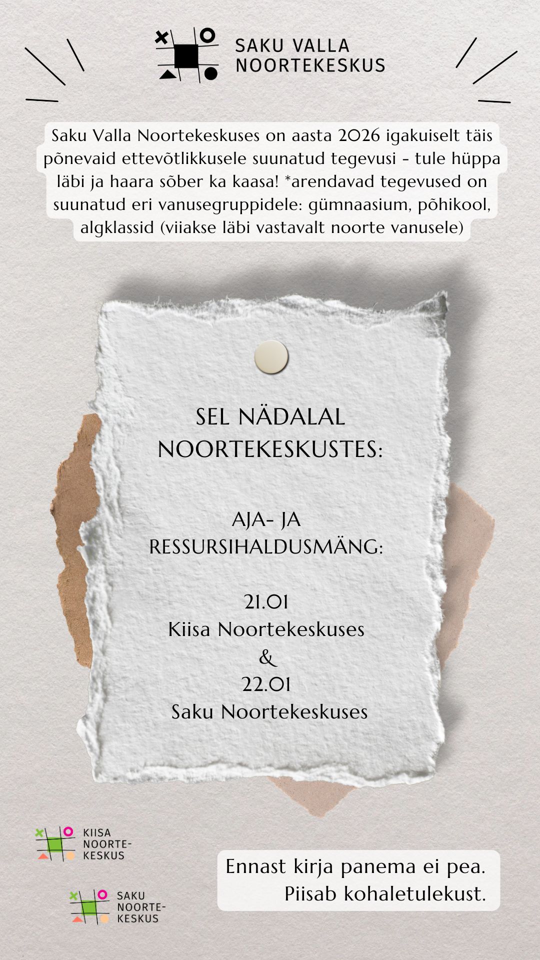 ETTEVÕTLIK nädal NOORTEKESKUSTES 19.-23. jaanuar