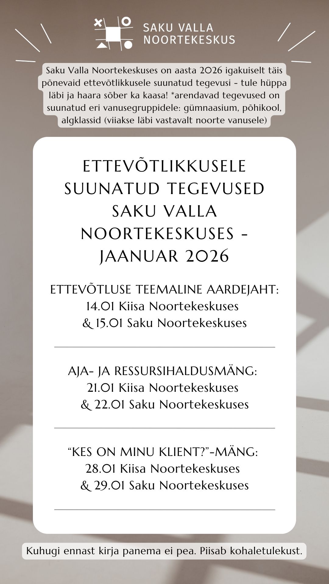ETTEVÕTLIKUD tegevused NOORTEKESKUSTES – jaanuar