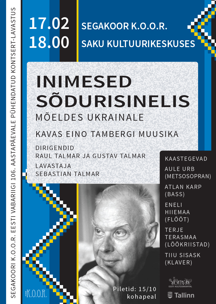 Pilet 15€ / 10€ kohapeal, sulas.SEGAKOOR K.O.O.R.