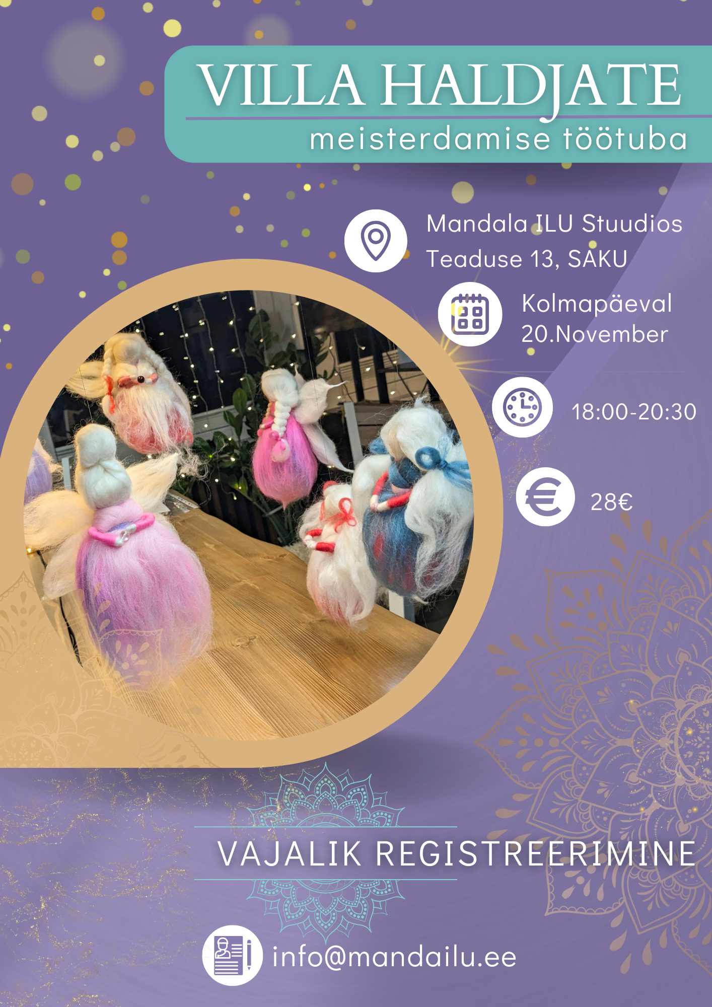 - Vajalik eelregistreerimine (info@mandalailu.ee), kuna kohtade arv on piiratud.