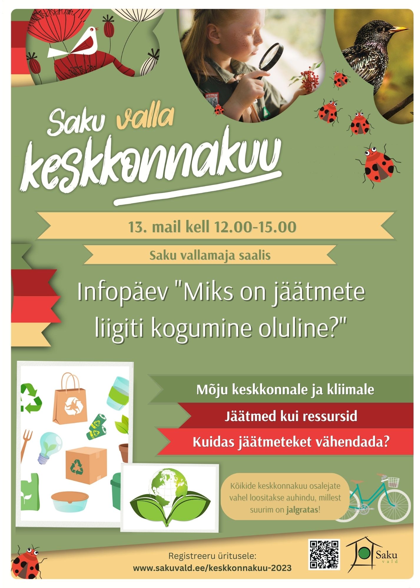 13. mail kell 12:00- 15:00 toimub Saku vallamaja (Juubelitammede tee 15, Saku alevik) saalis infopäev teemal “Miks on jäätmete liigiti kogumine oluline?”