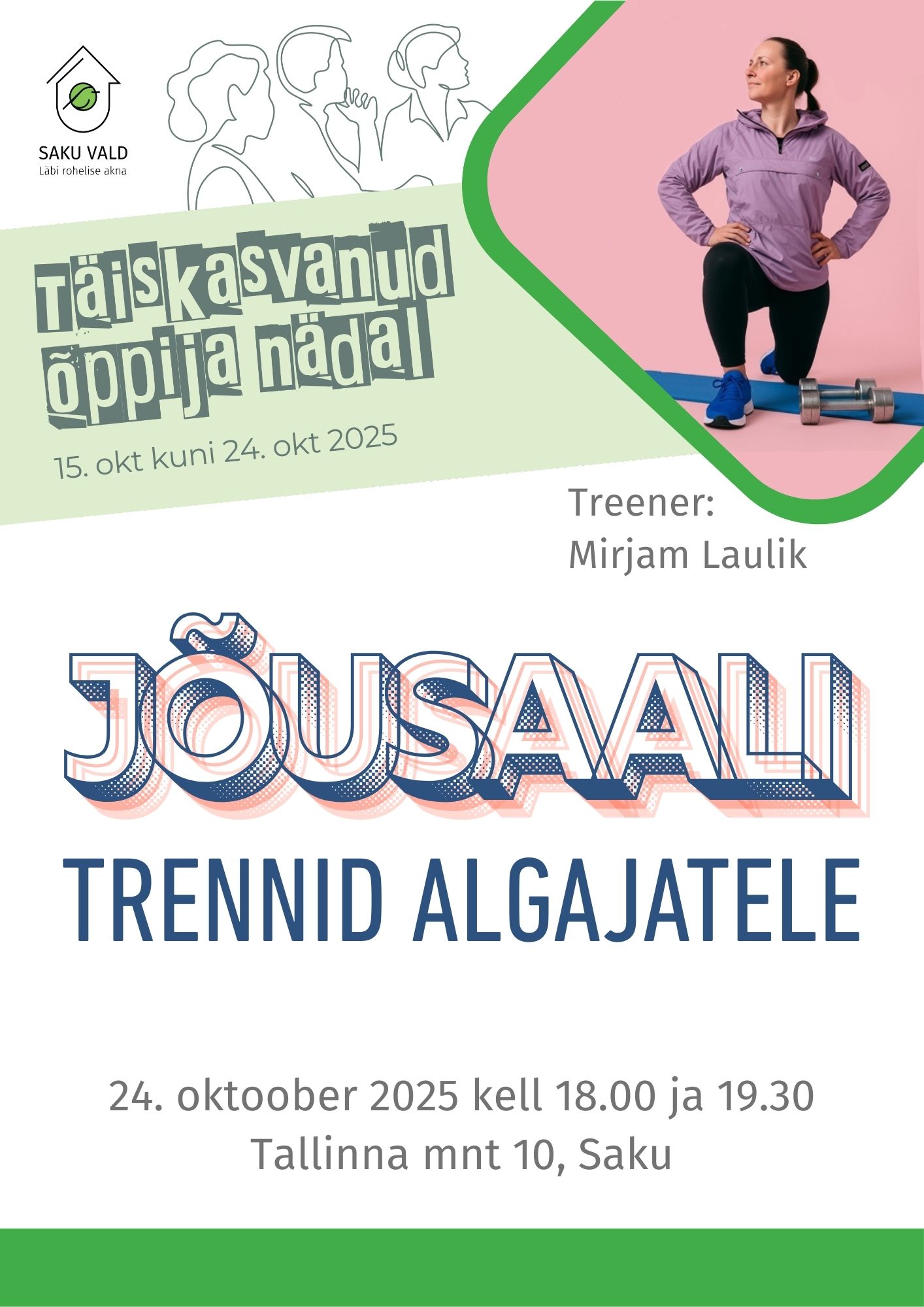 Tasuta. Vajalik etteregistreerimine.Tule osale Saku Spordikeskuses algajate jõusaalitreeningutel.