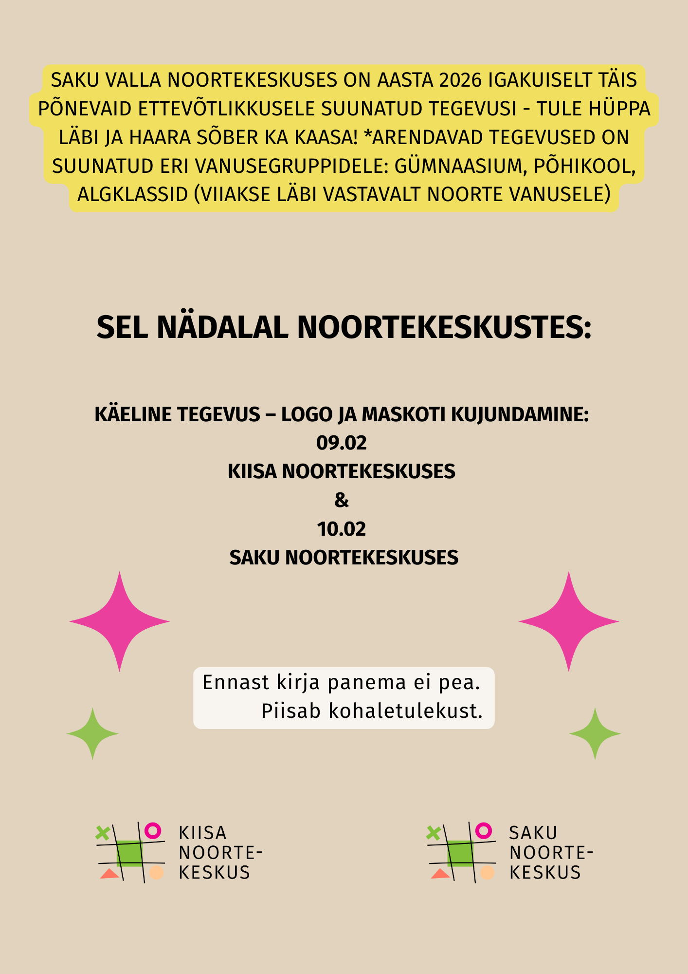KÄELINE TEGEVUS – Logo ja maskoti kujundamine (ETTEVÕTLIK tegevus noortekeskuses*)
