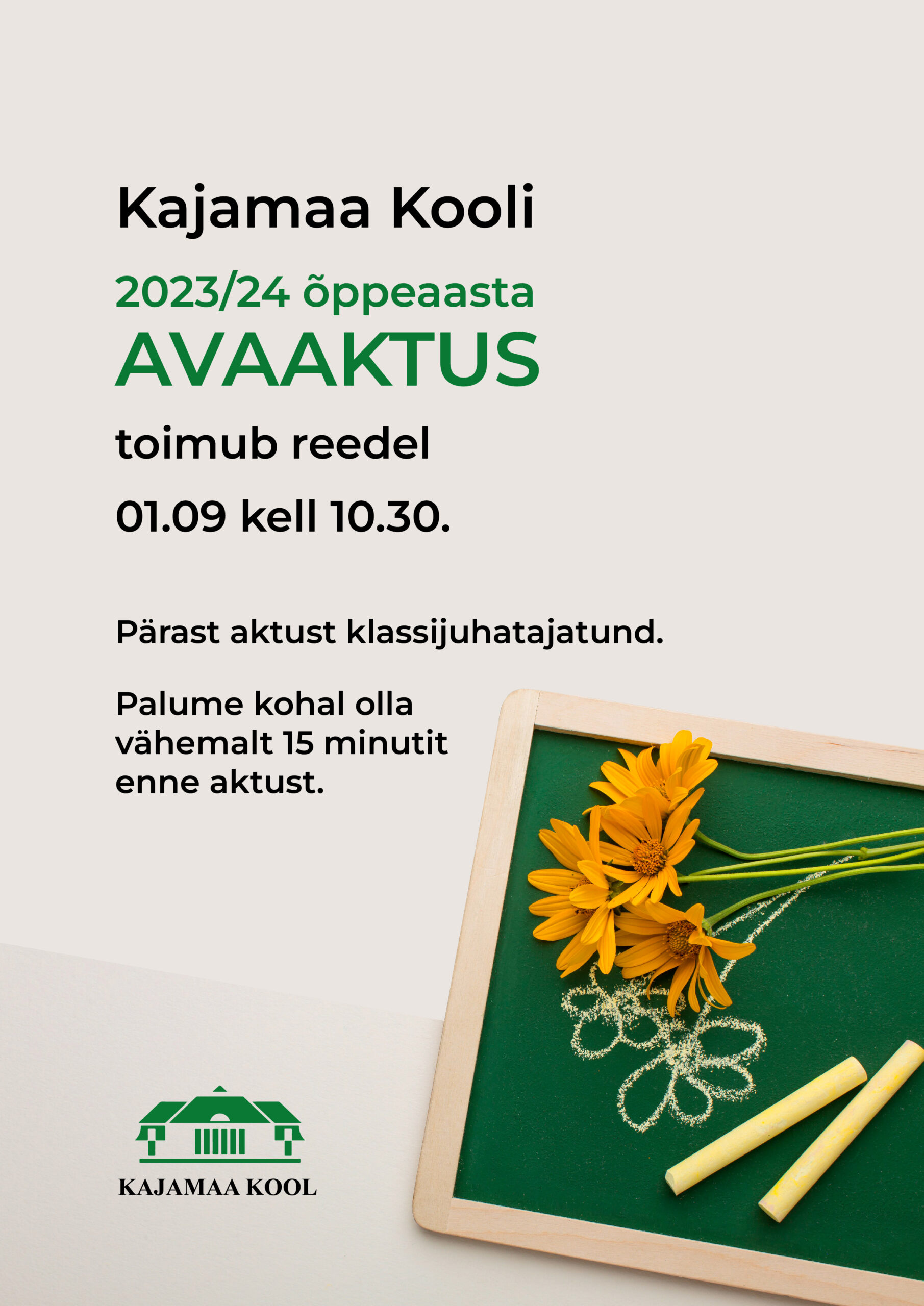 TasutaKajamaa Kooli 2023/24 õppeaasta avaaktus toimub reedel 01.09 kell 10.30.