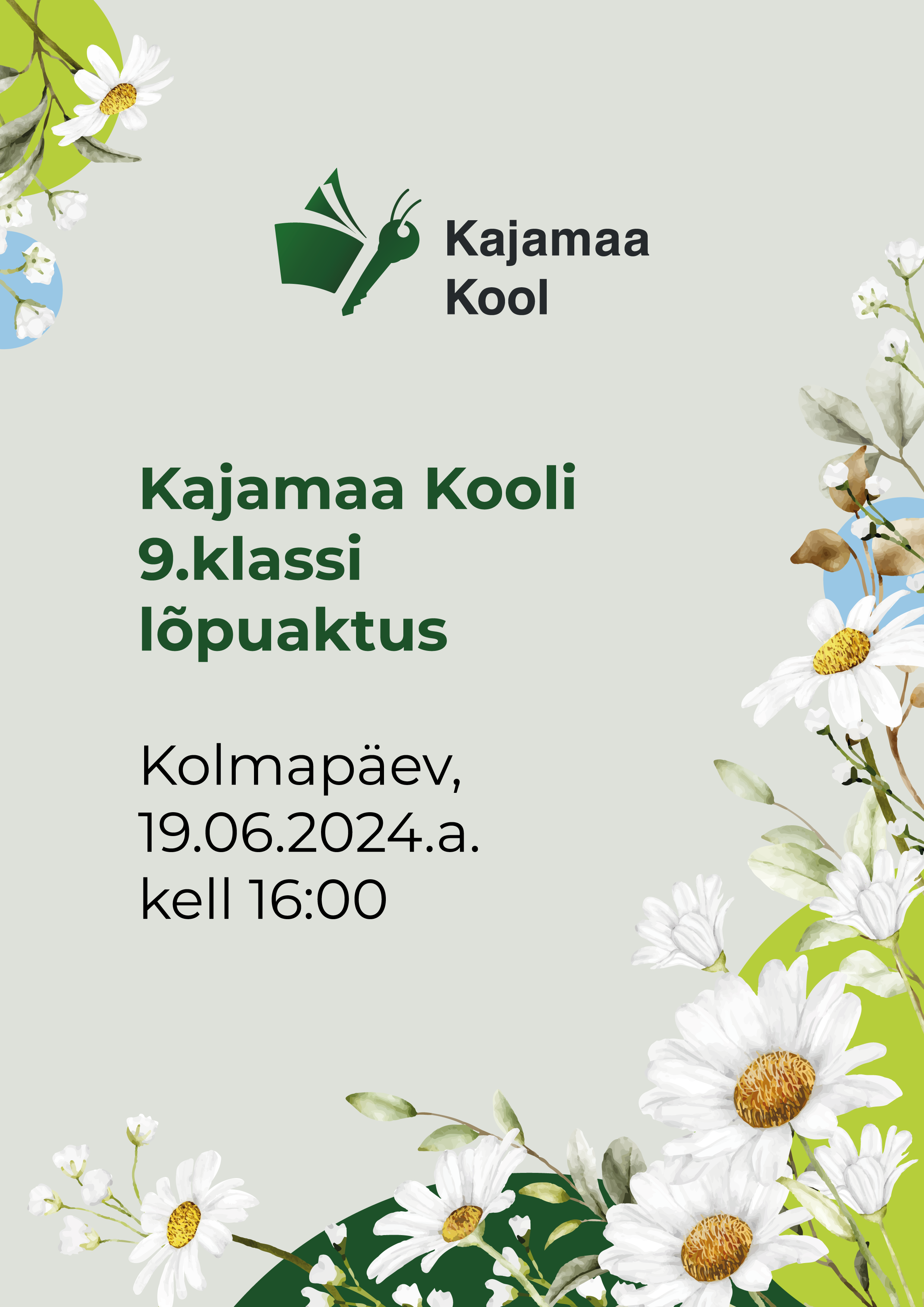 TasutaKajamaa Kooli 9. klassi lõpuaktus toimub kolmapäeval, 19.06.2024.a kell 16:00.