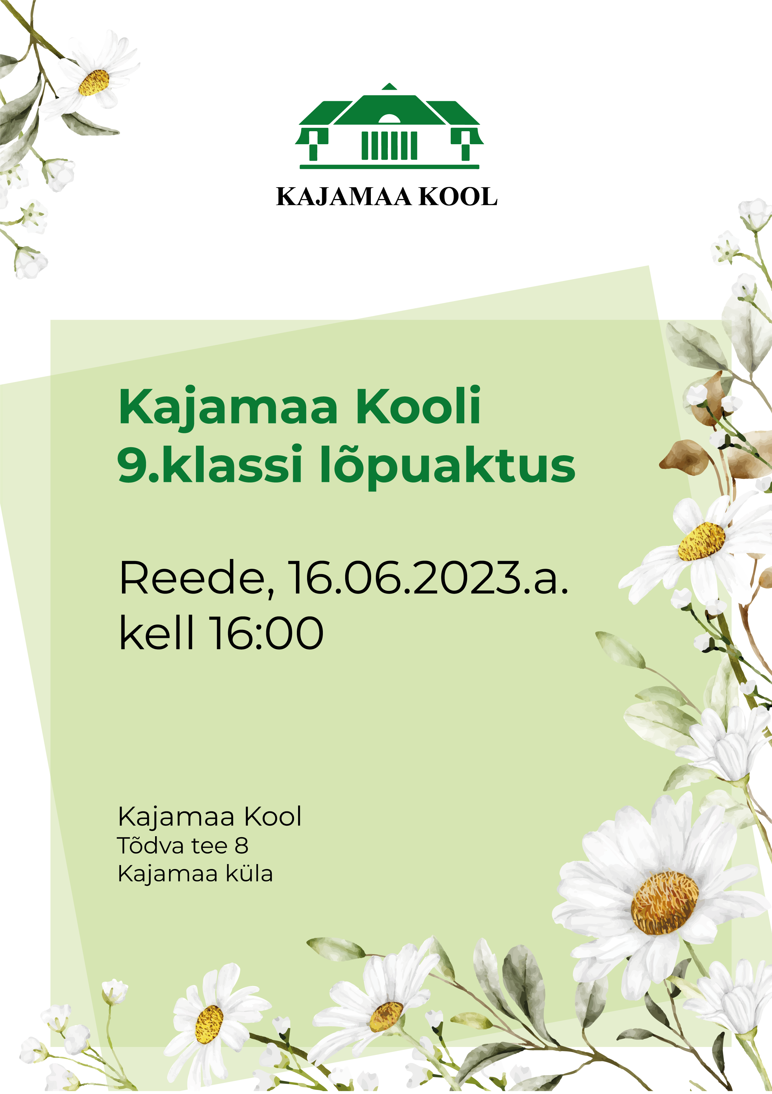 TasutaKajamaa Kooli 9. klassi lõpuaktus toimub reedel, 16.06 kell 16.00