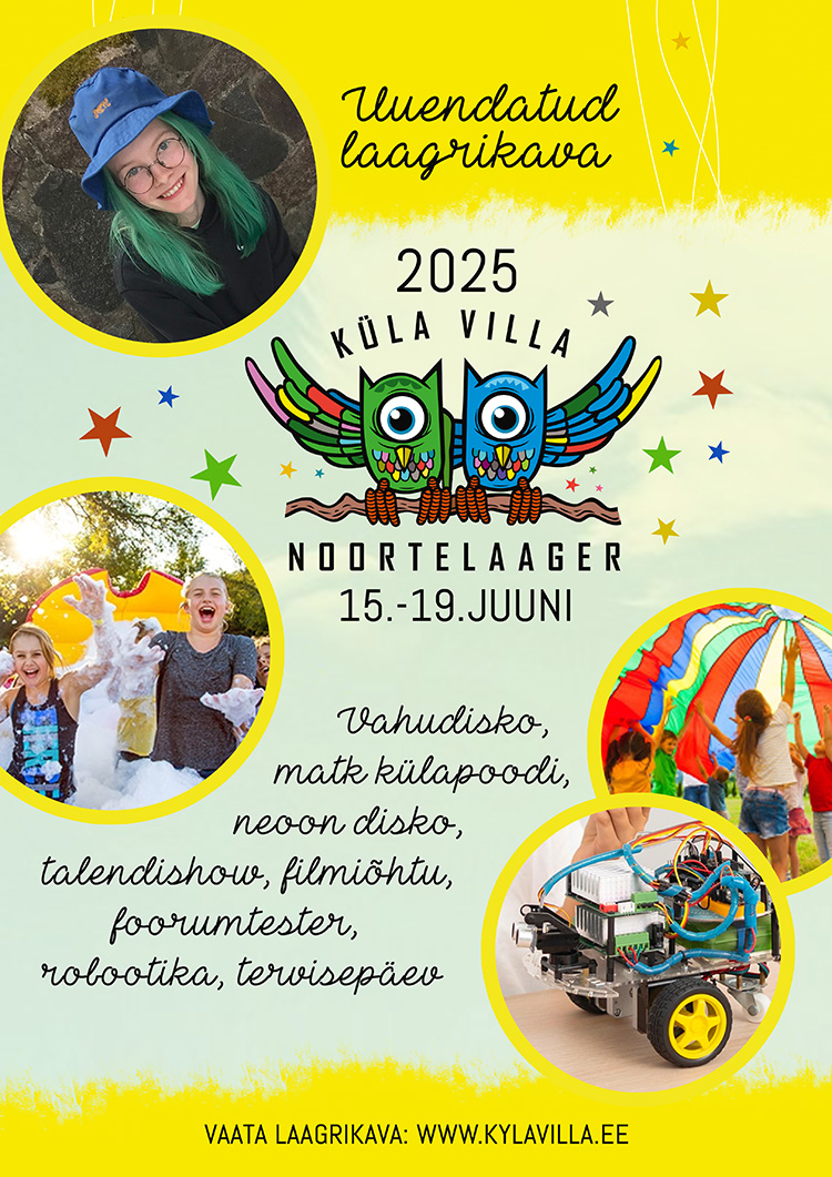 215 eurot Soodustus 5 protsenti teisele lapsele peres Soodustus 15 protsenti Perekaardi omanikuleKüla Villa noortelaager tuleb see aasta taas ja juba kaheksandat korda! Kuupäevadeks on 15.-19. juuni ning asukohaks kesk loodust asuv Küla Villa puhkekompleks. Ootame 7-14 aastaseid noori.