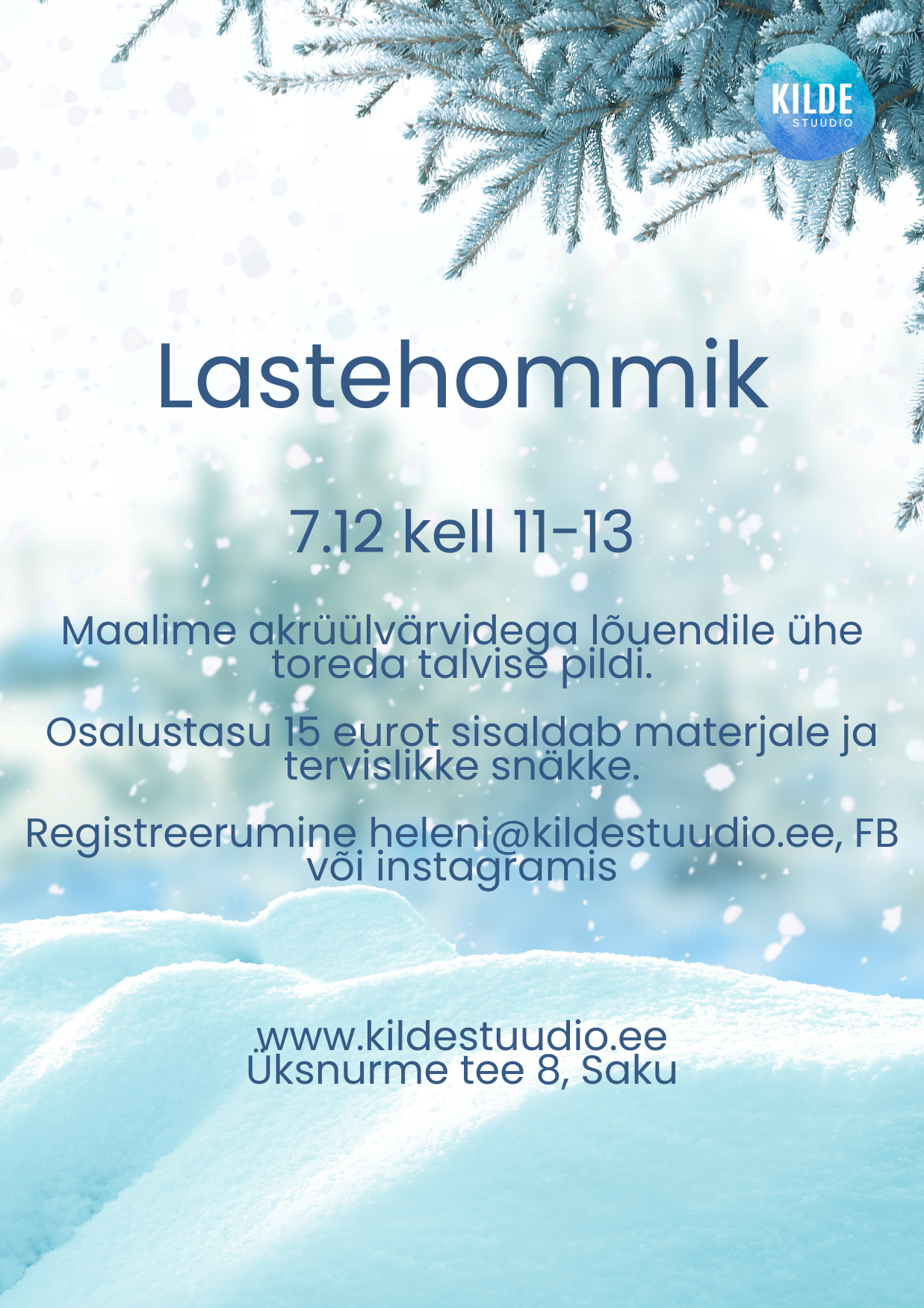 Registreerumine heleni@kildestuudio.ee, FB või instagramis