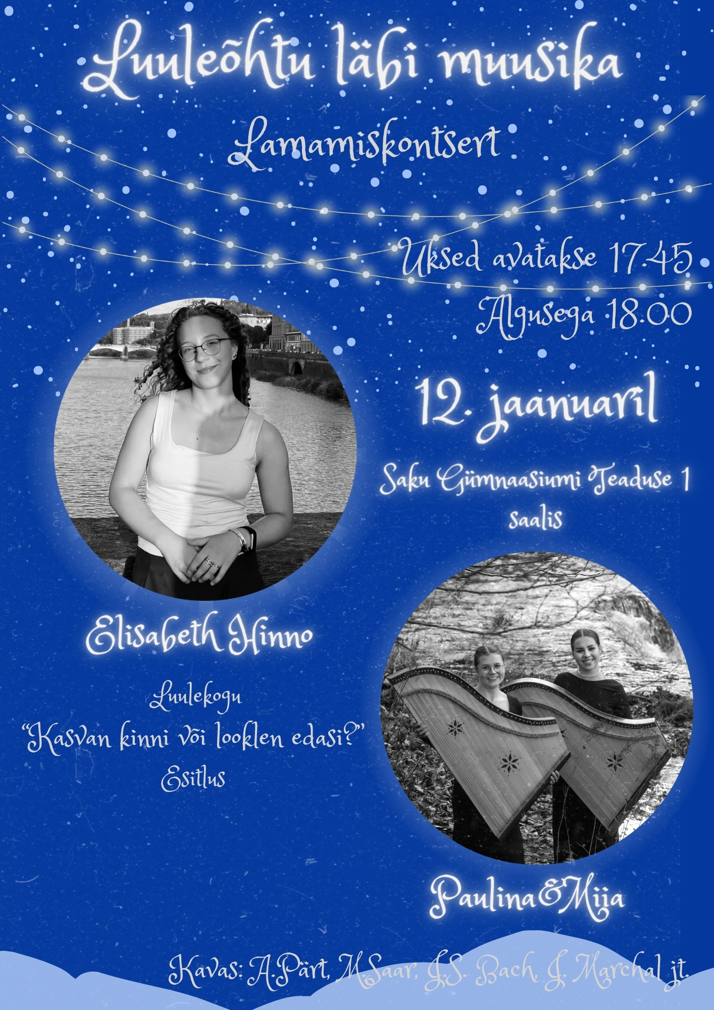 Avame uksed kell 17.45, kontserd algab 18.00.
