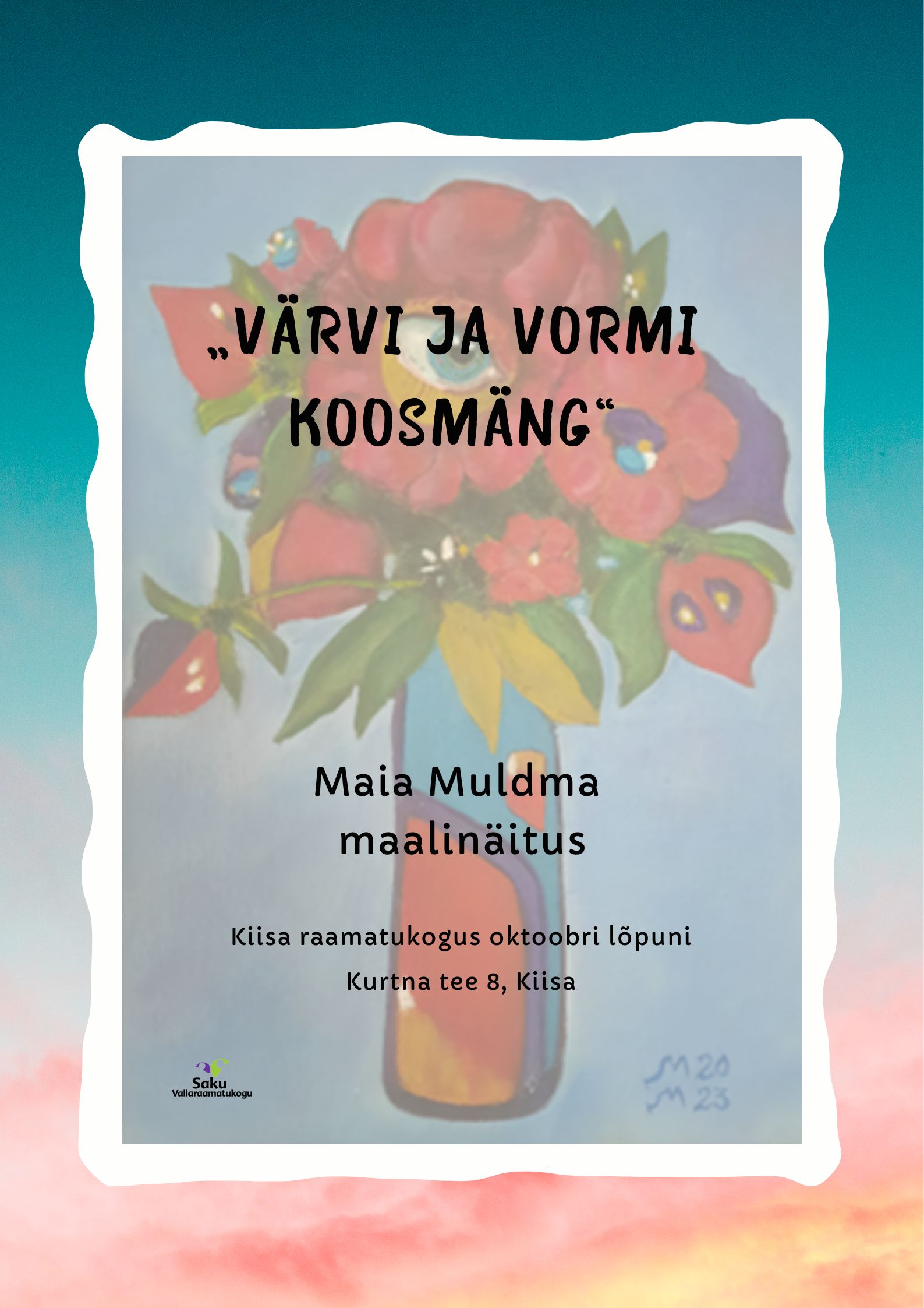 Kiisa raamatukogu näituse „VÄRVI JA VORMI KOOSMÄNG“ taieste autor olen mina, Maia Muldma. Muusikapedagoogi eriala kõrval harrastan juba aastaid maalimist.