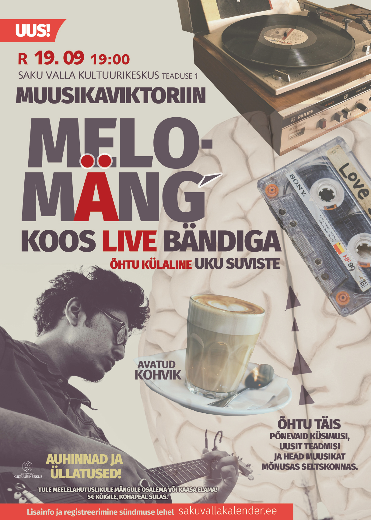 5€ osalejale ja publikule, kohapeal sulas.Alustame uue meelelahutusliku muusikaviktoriiniga MELOMÄNG, koos live bändiga!