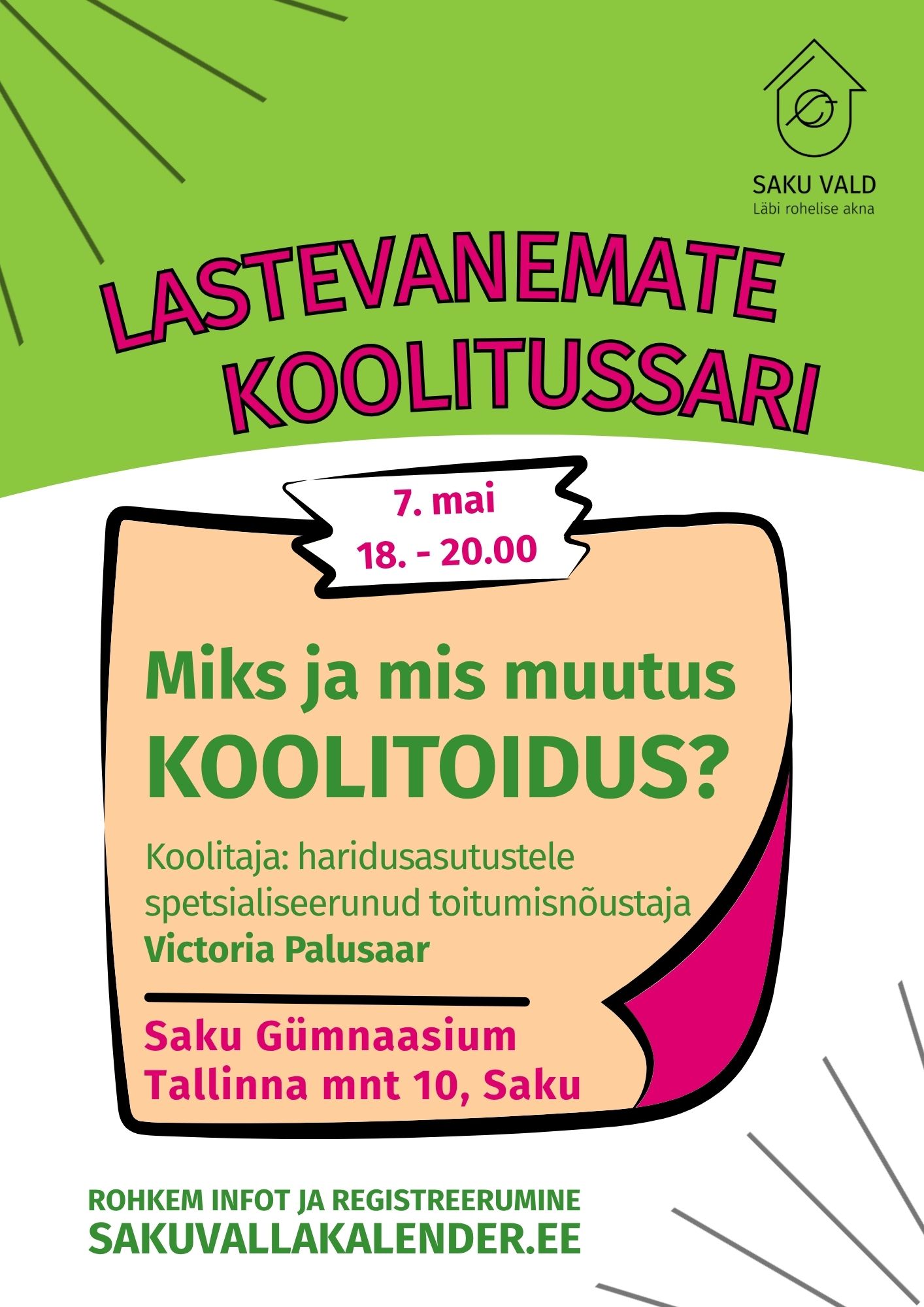 Tasuta. Vajalik etteregistreerimine.Koolituse eesmärk on anda lapsevanematele selge ja praktiline ülevaade muutustest, mis