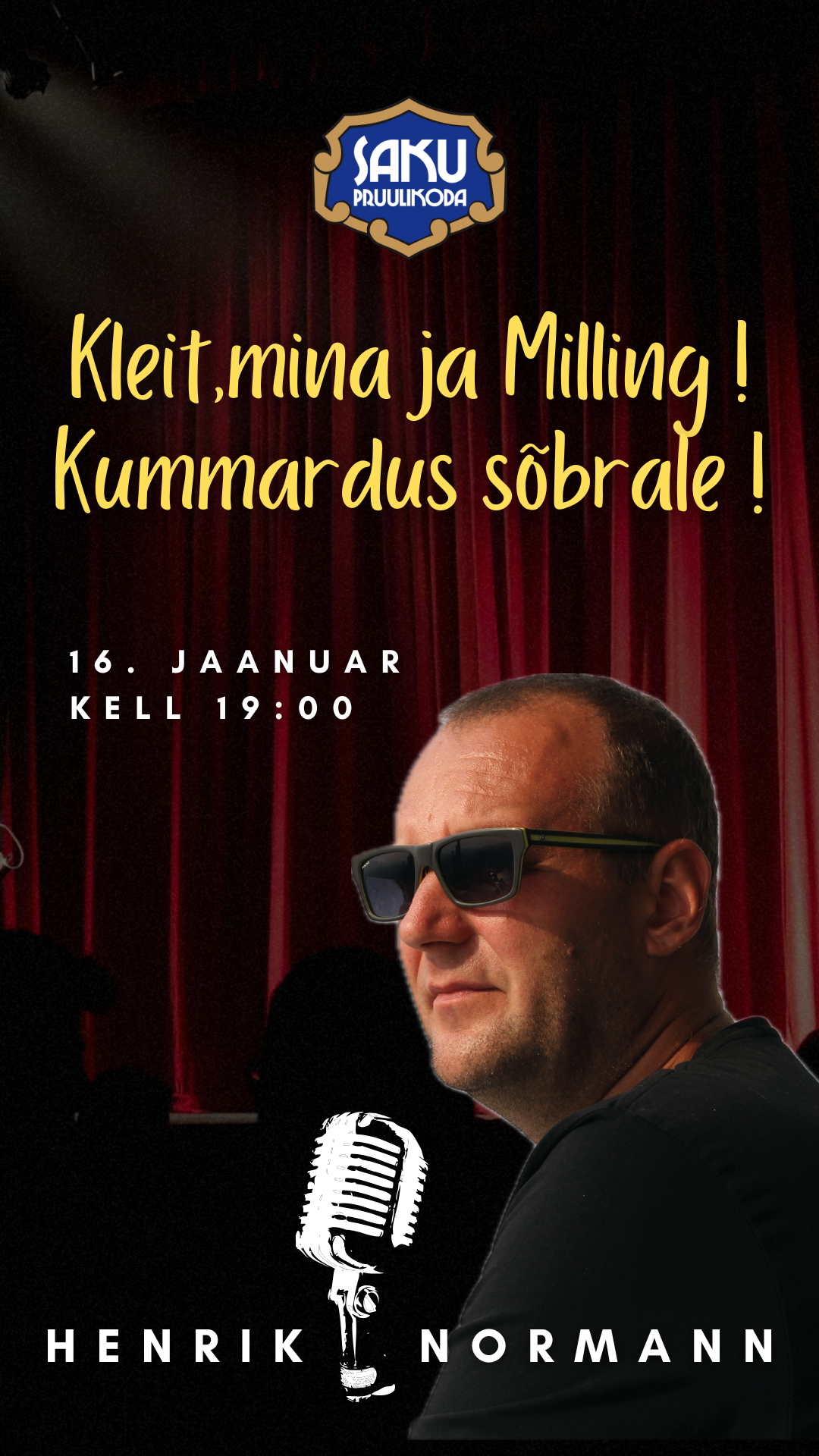 https://store.piletilevi.ee/public/et/event/455237/purchase/sector/8548616. jaanuar kell 19:00 – märgi see kuupäev kalendrisse ja ole valmis naerma, sest meie juures astub üles armastatud näitleja ja koomik Henrik Normann oma uue monoetendusega!