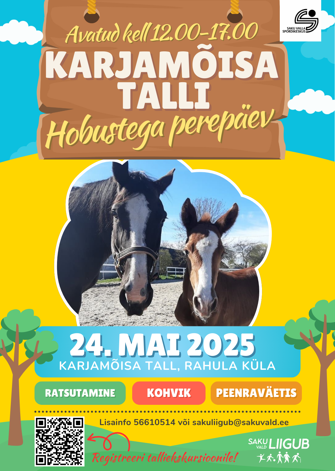 TasutaOotame kõiki huvilisi Rahula külas asuvasse Karjamõisa talli toredale perepäevale. Avatud on kohvik, kaasa saab osta peenraväetist ning tehnikahuvilised noored saavad proovida kuidas kopplaaduriga tööd teha saab. Päeva jooksul tutvustatakse kogukonna traditsioone, saab sõita ponide või hobusega ning kl 14.00 – 14.30 toimub talli sisemaneežis võistlushobuse show.