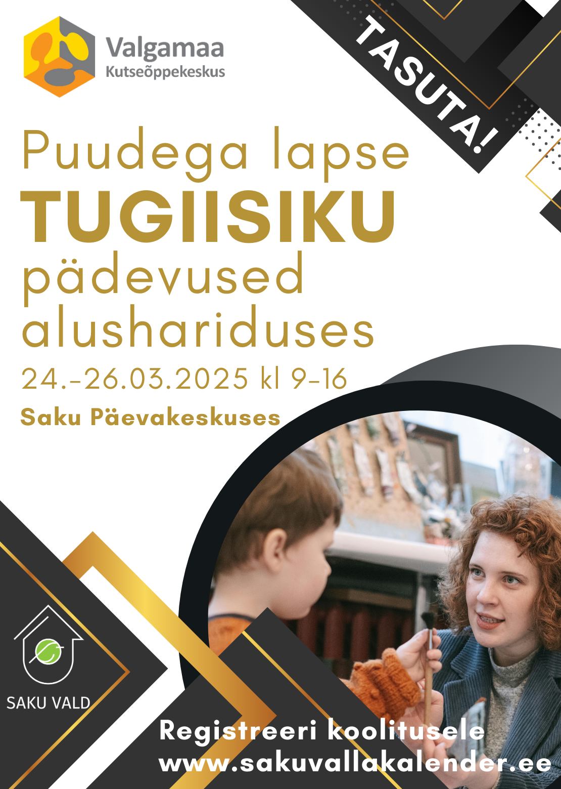 Koolitus toimub Saku Päevakeskuses (Juubelitammede tee 6, Saku):