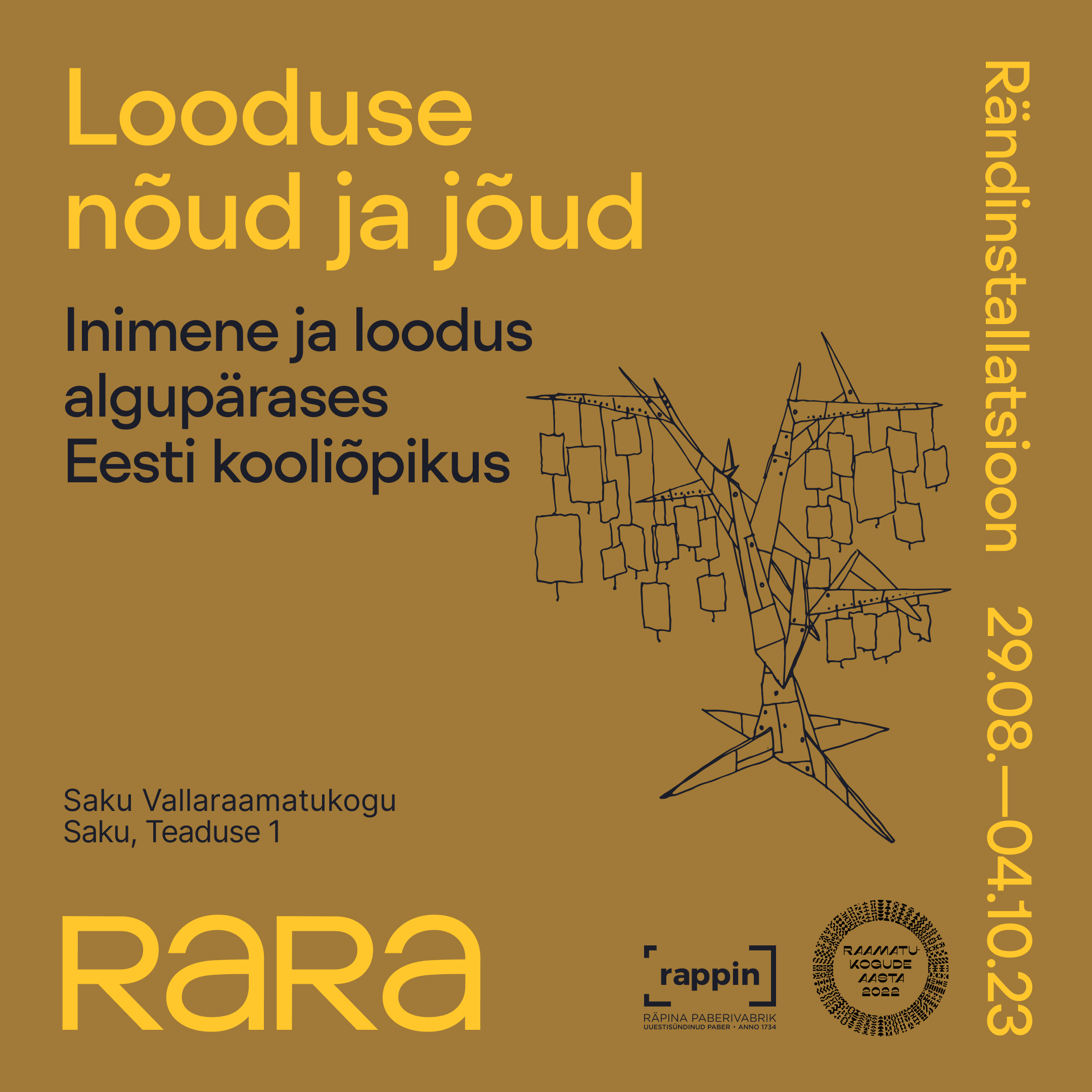 Alates 29. augustist on Saku Vallaraamatukogus avatud rändinstallatsioon “Looduse nõud ja jõud. Inimene ja loodus algupärases eesti kooliõpikus”. Rahvusraamatukogu harulduste ja vanaraamatute kogu põhjal valminud installatsioon ühendab keskkonnateadliku mõtteviisi ja looduse 19. sajandi elutarkuste ja õpetustega. Installatsiooni aluseks on Carl Robert Jakobsoni, Ado Grenzsteini ja Juhan Kunderi toona kirjutatud kooliõpikud. Arusaam loodusest ja keskkonnahoiust, mis enam kui sada aastat tagasi kirjutatud õpikutest vastu vaatab, on mõjus ja aktuaalne ka tänapäevase kliima- ja keskkonnakriisi kontekstis.
