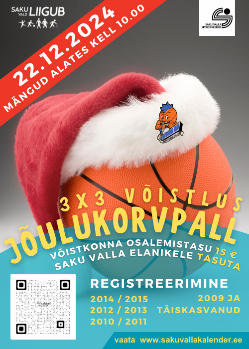 Võistkonna osalustasu on 15 €, sularahas kohapeal. Pealtvaatajatele ja Saku valla klubidele TASUTA!Teeme Saku Spordikeskuse suures pallisaalis aastalõpu viimase 3×3 kossuvõistluse ja ootame kõiki klubisid ja harrastajaid osalema. Võistlema on oodatud poisid, tüdrukud, mehed ja naised! Võtke fännid kaasa!
