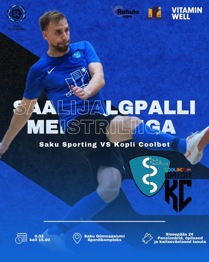 2 eurot Õpilased, Pensionärid ja kaitseväelased Tasuta⚽ SUUR SAALIJALGPALLI LAHING: Saku Sporting vs. Kopli Coolbet! ⚽
