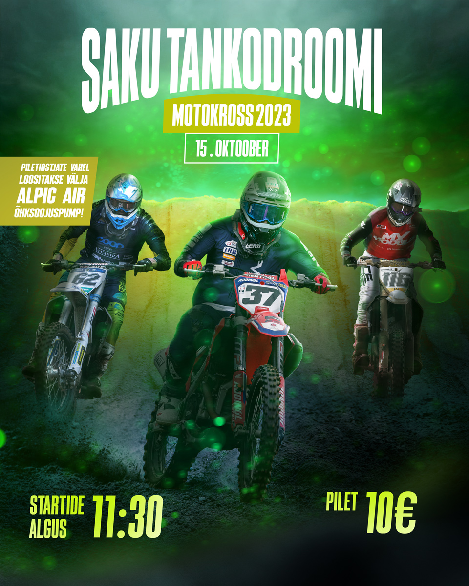 Pilet 10 €15.oktoobril 2023 toimub juba kolmandat korda Saku Tankodroomi motokross. Kohal on nii Eesti, Läti kui Soome kiired sõitjad ja oodata on pingelisi lahinguid suurte rahaliste auhindade peale. Ühtlasi on tegu selle hooaja viimase MX Liiga etapiga.