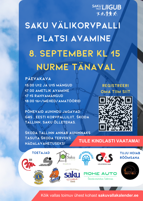 Avame Sakus Nurme mäe juurdes täiesti uue välikorvpalli väljaku. Tule kohale ja näita, et toetad korvpalli!