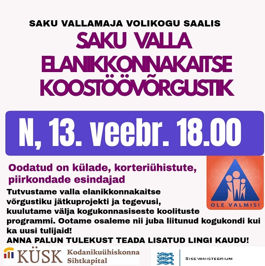 Meil on heameel teatada, et Kodanikuühiskonna Sihtkapitali Innovatsioonifondi teises voorus heakskiidetud ülevallalise projekti abil  saame jätkata elanikkonnakaitse alase koostööga.  Uue projekti esimene kohtumine toimub 13. veebruaril Saku vallamajas ühises kohvilauas.