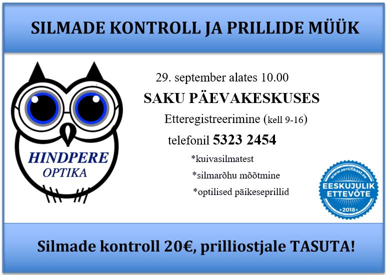 Silmade kontroll 20 eurotSilmade kontroll ja prillide müük.