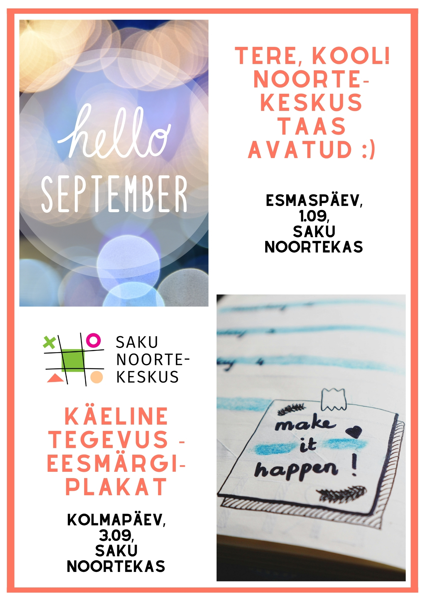 Tegevused Saku Noortekeskuses 1.09 ja 3.09