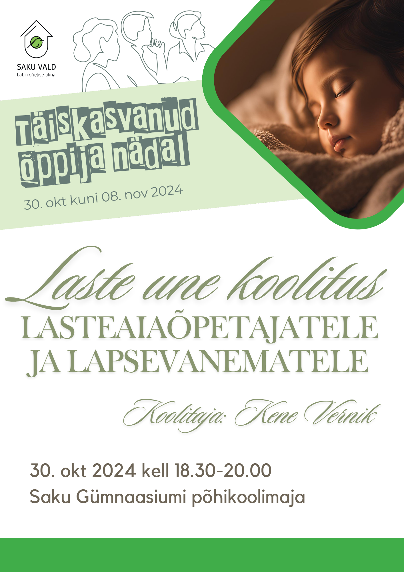 Koolitus toimub 30. oktoober 2024 kell 18.30 – 20.00 Saku Gümnaasumi põhikoolimaja auditooriumis, Tallinna mnt 10, Saku.