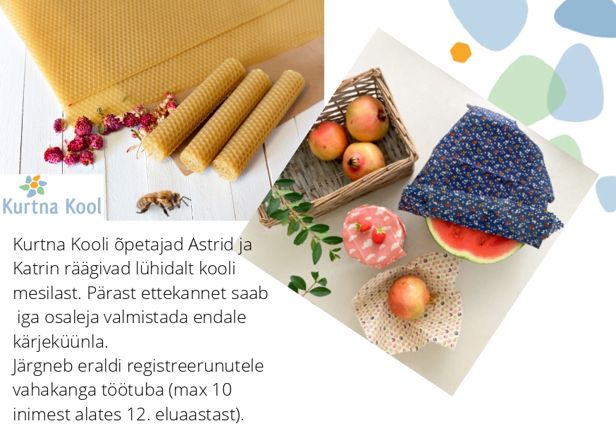 Tasuta17. mail kell 18:00-19:30 toimub Kurtna Koolis (Kurtna tee 50, Kurtna küla) tutvumine kooli mesilaga ja seejärel mesilasvaha töötoad.