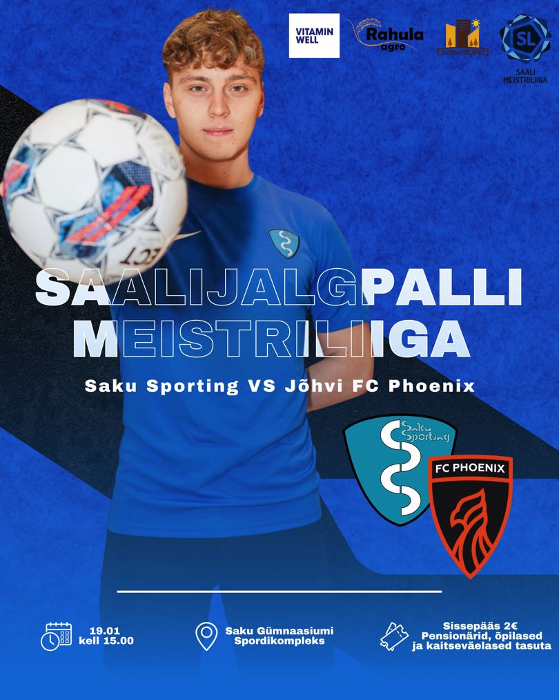 Pühapäeval (19.jaanuar 2025) algusega kell 15:00 mängib Saku saalijalgpalli meeskond S. Jõhvi FC Phoenix’ga.