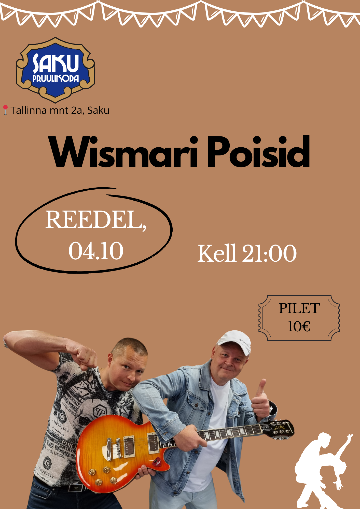 Pilet 10€Pane end valmis reede, 04. oktoobriks, sest Wismari Poisid tulevad meile külla ja toovad lavale suurepärase peo!